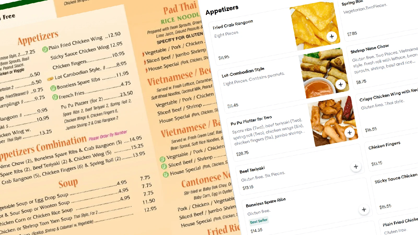 the restaurant lists different menu items at different prices on their website and on different food delivery platforms.